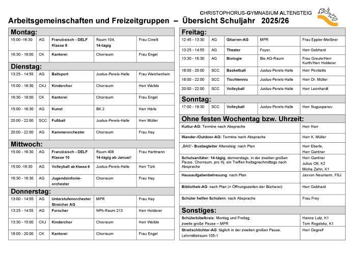 Der aktuelle AG-Plan wird in der Regel in den ersten Schulwochen veröffentlicht.